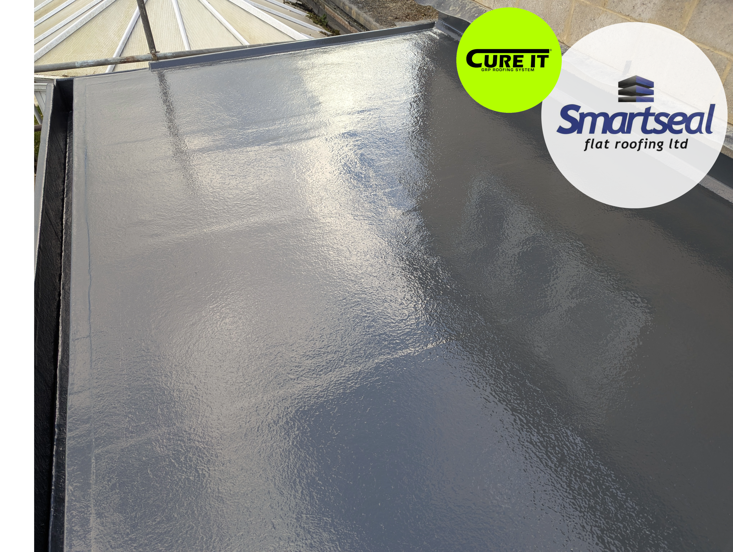 Our GRP flat roof system includes a base-resin, fibreglass chopped-strand matting and a pigmented resin for the topcoat. These roofs are boarded with 18mm t&g OSB3 sterling boards, and are laid with either 450g per m² matting (standard), 600g for heavy foot traffic, and 900g for green roofs.