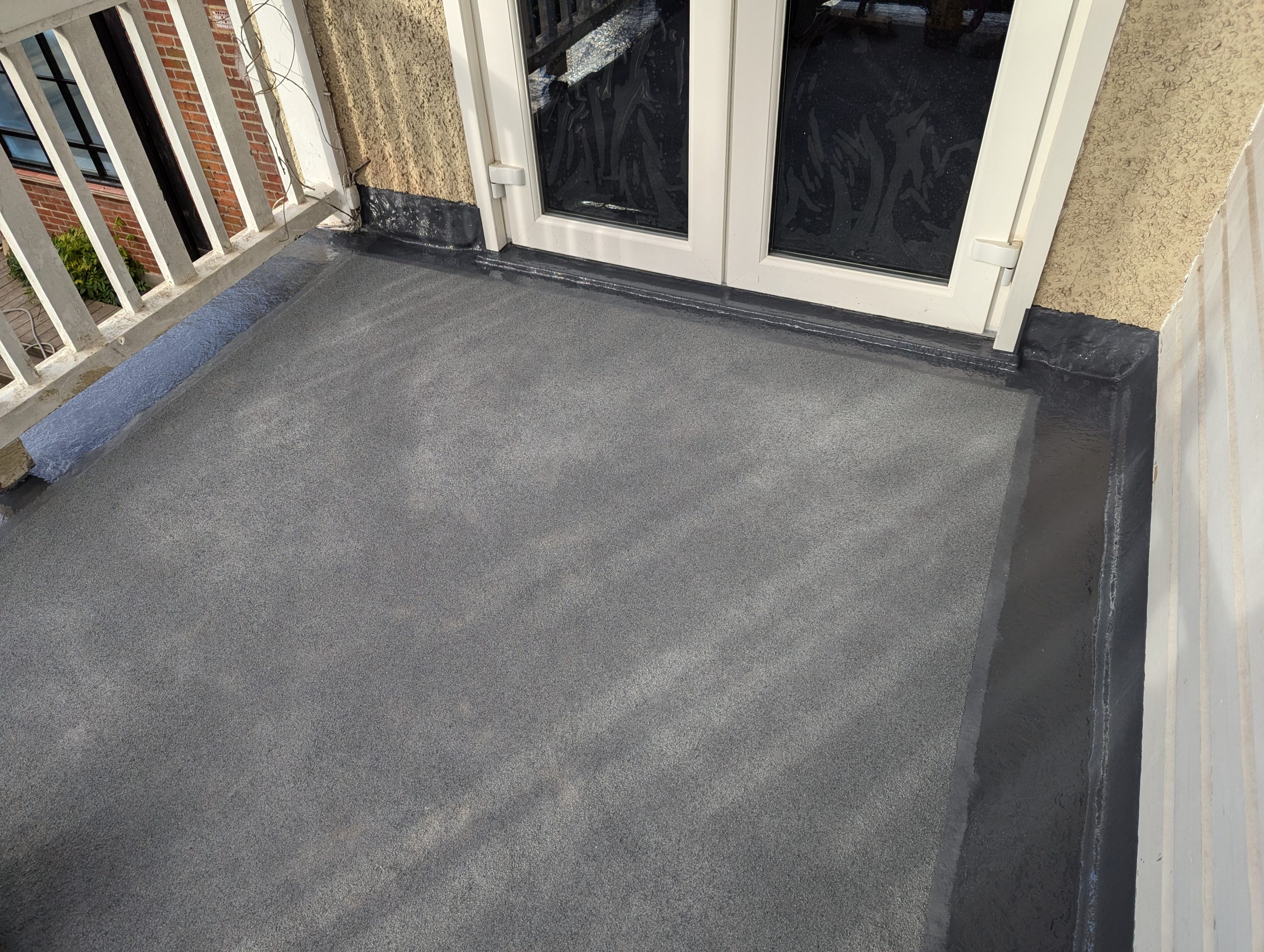 For balconies and walk-ways a 600g m² chopped-strand matting will be used to accommodate heavy foot traffic. Additionally heavy-duty thicker fibreglass trims may be for extra protection to the perimeter. We offer various finishes for balconies & walk-ways which provide grip and added durability to the roof, including: